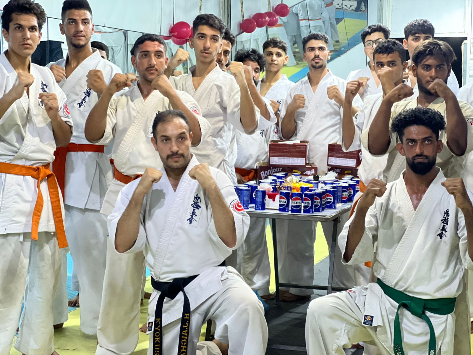 Karbala, Iraq – In an atmosphere of joy and pride, the Martyrs Dojo of the Al-Bughanim Activities Branch held a festive celebration on Tuesday, September 9, 2025, to honor the Shinkyokushinkai fighters who successfully passed their promotion exams.